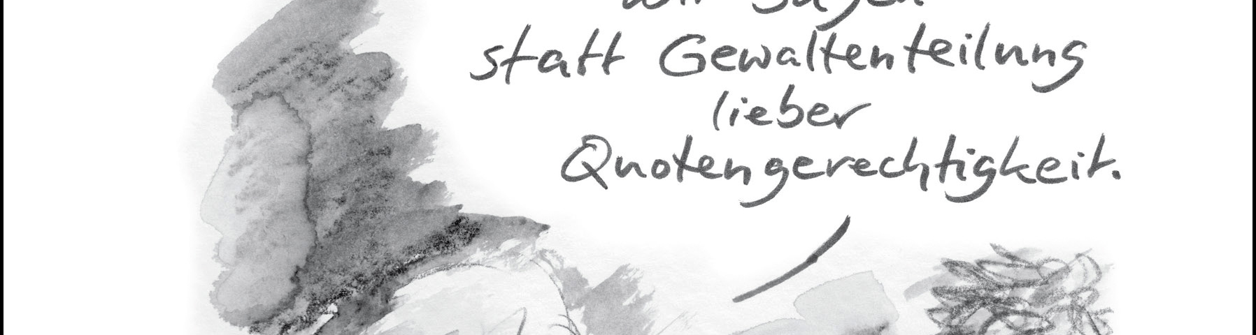 Die Aufgabe von Cartoonisten, Karikaturisten und Satirikern ist es ja, die kritisierte Realität und ihre Protagonisten durch Überzeichnung zu entlarven. Das geht heutzutage nicht mehr. Einem der letzten Cartoonisten, der sich noch nicht in die Feel-good-Ecke zurückgezogen hat, verbleibt nur noch die Aufgabe des Chronisten, indem er die ideologischen Phrasen, die dekadente Verhunzung von Worten und Werten, die schrittweise Zerstörung des Bewährten schwarz auf weiß für die Nachwelt festhält. Denn Blindheit, ja Gedankenfrost gehen um im Lande. Kurz: wo Wahnsinn zur Normalität wird, wird Satire zur Pflichtlektüre.