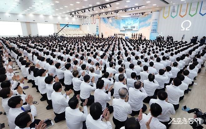 Der Gottesdienst begann mit der Moderation von Lee Ki-won aus der Haupt-versammlung, gefolgt von einer speziellen Videovorführung und einem Gebet von Seong Chang-ho, dem Leiter des Busan-Jakobus-Stammes. Anschließend hielt Vorsitzender Lee Man-hee eine Predigt, die von einer Preisverleihung für Missionierungserfolge begleitet wurde.