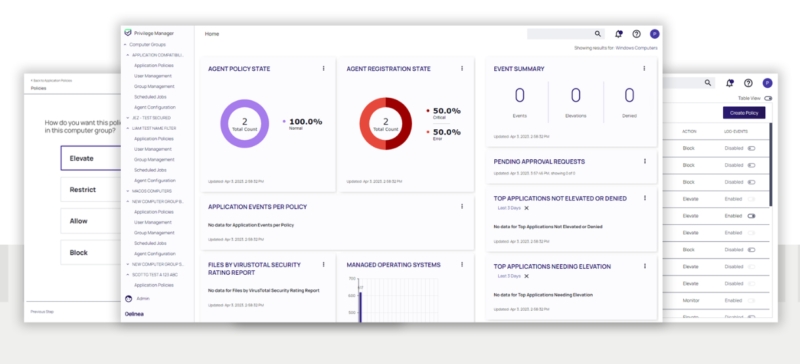 Privilege Manager setzt Just-Enough-Berechtigungen durch, die genehmigte Geschäftsaktivitäten unterstützen, und blockiert oder beschränkt gleichzeitig Berechtigungen, die von Malware ausgenutzt werden könnten. Dieser Ansatz reduziert die Reibungsverluste und steigert die Produktivität bei gleichzeitiger Optimierung der Sicherheit.