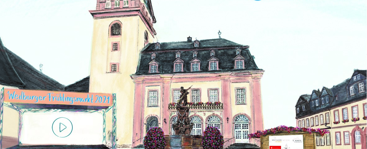 Weilburg, im April 2021. Ab Samstag, den 24. April 2021, füllt sich der historische Marktplatz Weilburgs mit Leben. Was in Zeiten von Corona eigentlich undenkbar ist, wird Dank modernster Technik dennoch möglich. Für vier Wochen bekommen heimische Unternehmer und Aussteller die Chance, sich und ihre Angebote auf dem virtuellen Frühlingsmarkt der Stadt Weilburg zu präsentieren. Nachdem die Veranstaltung im vergangenen Jahr aus den bekannten Gründen abgesagt werden musste, startet das bunte Treiben nun zum ersten Mal digital und hält einige Überraschungen bereit.