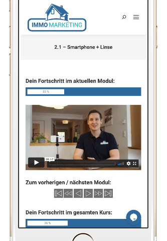 Du lernst im Kurs wie du mit deinem Smartphone (egal ob Android oder iPhone) deine Immobilie selbst filmen, und den Film professionell schneiden und bearbeiten kannst.