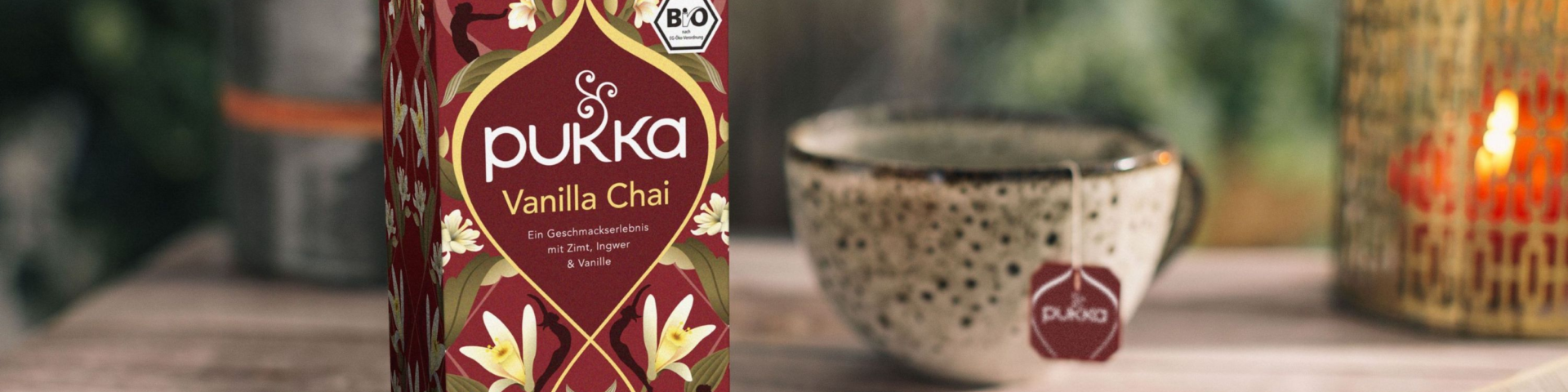 Wenn die Tage kürzer werden und die Temperaturen sinken, kommt eine wärmende Tasse Tee wie gerufen. Passend zum Beginn der kühleren Jahreszeit ergänzt der Bio-Tee „Vanilla Chai“ das Pukka-Sortiment. Der würzig-süße Genuss mit Zimt und Kardamom gehört in anderen Ländern bereits zu den Teefavoriten und ist nun auch in Deutschland erhältlich.
