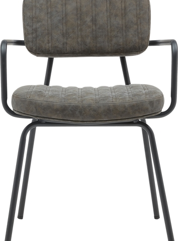 Das Stahlrohr-Gestell ist zierlich und stabil zugleich: Die besonders stoßfeste, mattschwarze Pulverbeschichtung lässt den Polsterstuhl edel erscheinen. Die Polster in Sitz und Rücken verleihen dem Stuhl seine besondere Bequemlichkeit. Dabei ist die Pfeifensteppung mit doppelter Ziernaht ein extravagantes Designelement. Das zurückhaltende Dunkelgrau des Bezugs aus PU-Leder rundet das Erscheinungsbild ab. Das PU-Leder sieht nicht nur wertig aus, sondern zeichnet sich auch durch seine Unempfindlichkeit gegen Flecken und seine Langlebigkeit aus. Das sind Faktoren, die für einen Gastronomiestuhl unentbehrlich sind.