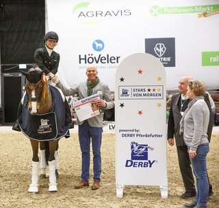Sechs Reiterinnen und Reiter qualifizierten sich im Rahmen der Einlaufprüfung für das Finale der Serie Derby Stars von Morgen am Sonntagnachmittag in der Halle Münsterland. Die Serie besteht aus sechs Prüfungen, die an unterschiedlichen Orten stattfinden, und richtet sich an junge Nachwuchstalente (U25) bzw. Reiter:innen von jüngeren Pferden bis zu einem Alter von zwölf Jahren.