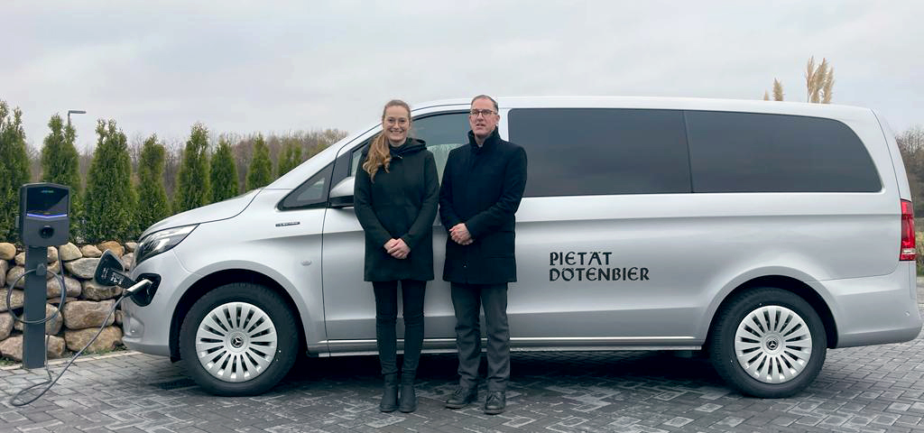 Seit kurzem hat die Pietät Dötenbier als erstes Unternehmen in Kassel ein vollelektrischen Bestattungswagen im Einsatz. Der eVito von Mercedes fährt ohne Abgase und Geräusche, was ihn zu einem perfekten Fahrzeug auch auf Friedhofswegen macht. „Vor allem beim Kondukt ist das eine tolle Sache, wenn die Angehörigen im Trauerzug hinter dem Fahrzeug her gehen,“ beschreibt Dominik Kracheletz die Neuanschaffung. „Wir testen hier bei der Pietät Dötenbier den Einsatz und wenn es gut angenommen wird, wollen wir unsere Flotte weiter umstellen“, so Kracheletz weiter. Mit der Dachfirma fameco – Die Bestatterfamilie betreibt er gemeinsam mit seinem Partner Michael aus dem Siepen 28 Standort mit aktuell 180 Mitarbeitern in ganz Deutschland. „Bei etwa 116 Fahrzeugen ist der Bedarf also recht groß und für uns ein zeitgemäßer Beitrag zum Klimaschutz in der Bestatterbranche“, stellt Dominik Kracheletz fest.
