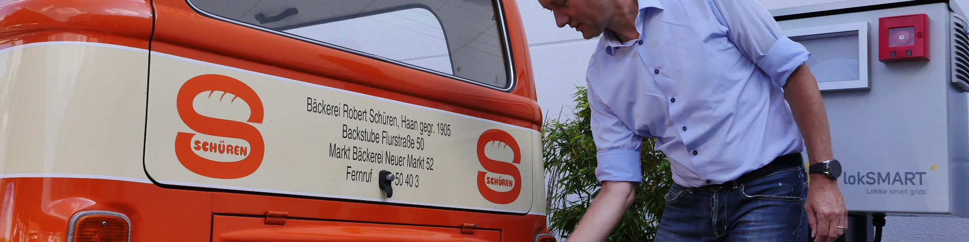 Prototypisch funktioniert das lokale, autarke Smart Grid bei der Bäckerei Schüren. Da die Bäckerei in den Abendstunden und vor allem früh morgens produziert und viel Strom fürs Backen und Kühlen braucht, tankt sie tagsüber Energie aus der Sonne, speichert diese und stellt sie über mobile und stationäre Speicher der Produktion zur Verfügung. Die mobilen und bidirektionalen Speicher der Elektro-Lieferfahrzeuge geben dabei automatisch jeweils nur so viel Strom ab, dass sie am nächsten Morgen die 18 Filialen und einige Grußkunden beliefern können. Die Liefertouren liegen dabei zwischen 45 und 150 Kilometern. Im Sommerhalbjahr deckt die Solarerzeugung mehr als 90 Prozent des Fahrstroms, im Winter rund zehn Prozent.