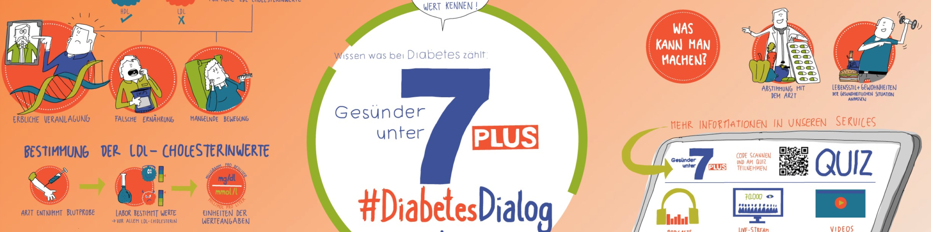 Frankfurt, 30.06.2022. Die wichtigste Botschaft des #DiabetesDialogs am Tag des Cholesterins: Alle sollten ihren Cholesterinwert kennen, insbesondere den LDL Cholesterinwert. Zum ersten Mal entstand bei „Wissen was bei Diabetes zählt: Gesünder unter 7 PLUS“ ein Bild mit dem Thema Cholesterin im Mittelpunkt. Auf diesem Bild wurden während des #DiabetesDialogs die Zusammenhänge zum Thema Cholesterin und Diabetes in Symbolen, Worten und Grafiken zusammengefasst.