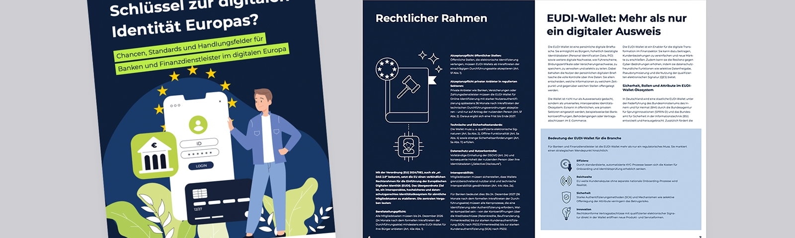 Mit der Einführung der European Digital Identity Wallet (EUDI-Wallet) steht die Finanzbranche vor weitreichenden Veränderungen. Bis Ende 2026 müssen alle Mitgliedsstaaten eine EUDI-Wallet einführen, ab 2027 sind Banken und Finanzdienstleister zur Akzeptanz verpflichtet. Die EUDI-Wallet ermöglicht EU-Bürgerinnen und -Bürgern, ihre Identitätsdaten sicher und selbstbestimmt zu verwalten – und schafft für Banken und Finanzdienstleister eine Basis für automatisierte KYC-Prozesse, effizientere Identitätsprüfungen und innovative, europaweit nutzbare digitale Services.