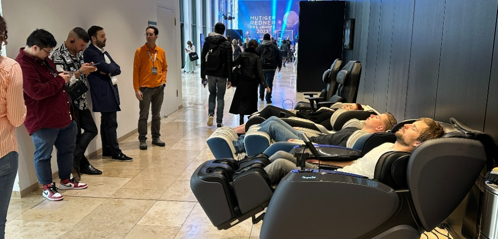 Es besteht ein klarer Trend hin zu Großveranstaltungen, die auch Wellness- und Gesundheitsangebote wie Yoga, Meditation und Massagen anbieten. Denn laute Musik, Menschenmassen und intensive Eindrücke hinterlassen ihre Spuren. Gerade bei älteren Besuchenden sind die Angebote der Wohlfühloasen beliebt. Sie sind Orte der Ruhe und Erholung, in denen man sich vom Trubel zurückziehen und entspannen kann. Michael Roedeske, Gründer von Massagesessel Welt, sieht den positiven Effekt von Wohlfühloasen auf Großveranstaltungen immer wieder. „Mit unserem Kurzzeit-Mietmodell für Massagesessel unterstützen wir Veranstalter, ihren Teilnehmenden körperliche und geistige Entspannung zu bieten. Gerade in diesem Jahr ist die Nachfrage enorm hoch“, so der Entspannungsexperte. Regelmäßig fragen Veranstalter an, um seine Sessel in ihre Erholungs-Lounges zu integrieren. Zuletzt war Massagesessel Welt mit drei Modellen auf dem zweiten Avalanche-Summit in Barcelona im sogenannten Recharge Garden: „Unsere Sessel kamen überragend an, mit teils langen Warteschlangen von mindestens 15 Leuten.“ Die hohe Nachfrage einerseits sowie das steigende Bewusstsein für Gesundheit und Wohlbefinden andererseits werden dazu führen, so Michael Roedeske, dass Wohlfühloasen auf Festivals und Konferenzen in Zukunft nicht mehr wegzudenken sind.