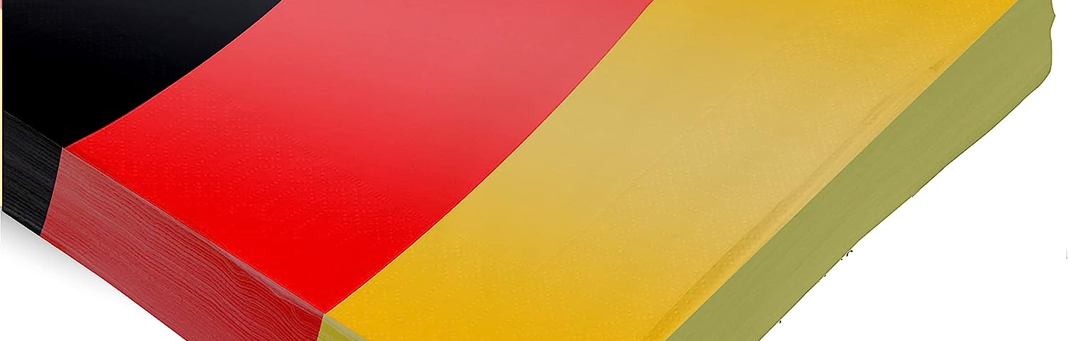 – Das Set enthält 20 Papierservietten in den Farben Deutschlands (schwarz, rot und gelb).