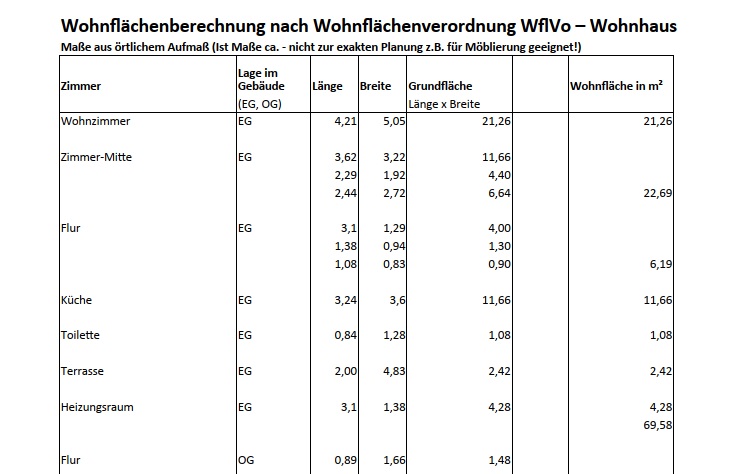 Ermittlung der Wohnfläche nach Wohnflächenverordnung WoFlV