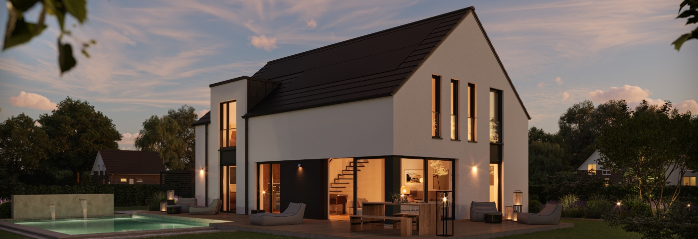 Die vorgestellten neuen Entwürfe werden wie alle Viebrockhäuser CO2-neutral gebaut, in der Effizienzhaus Stufe 40 realisiert, mit modernen Wärmepumpensystemen beheizt, durch eine leistungsstarke Photovoltaikanlage und eine Lithium-Ionen-Hausbatterie mit Sonnenstrom versorgt. Ein Smart Home-System, das bei Viebrockhaus inklusive ist, steigert den Wohnkomfort dieses Massivhauses noch weiter.