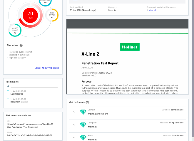 SearchLight unterscheidet zwei neue Typen: Alerts für exponierte technische Dokumente und kommerzielle Dokumente. Jeder Vorfall wird inhaltlich analysiert und einer von zehn Kategorien zugeordnet, einschließlich Risikoeinstufung sowie nutzerspezifischer Kriterien zur Priorisierung.