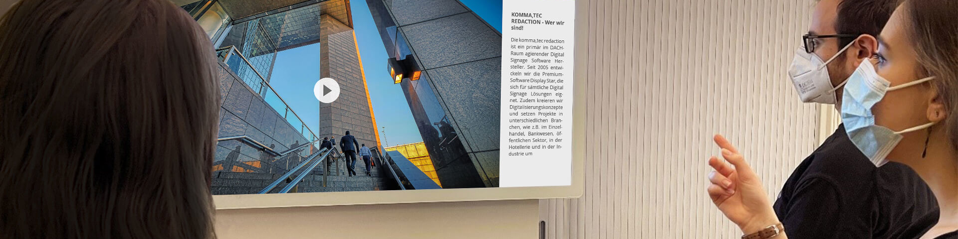 Er vermittelt Besuchern eines Unternehmens oder einer öffentlichen Einrichtung in aller Regel den ersten Eindruck – der Lobbymonitor. Hier können Verantwortliche einen Willkommensgruß für Gäste oder wichtige Infos für die Kollegen veröffentlichen. Umso wichtiger ist es, dass die Digital Signage Software, über die die Begrüßungsmonitore bespielt werden, einer einleuchtenden Logik folgt und einfach zu handhaben ist. Genau nach dieser Maxime haben die Programmierer des Premium Anbieters für Digital Signage komma,tec redaction gearbeitet, als sie die Software Display Star entwickelten. Die Digital Signage Software ist auch für weniger technikaffine Menschen ausgesprochen leicht zu bedienen und schnell mit den gewünschten Inhalten zu befüllen. Ein Aspekt, der dem gesamten Team des Hamburger Unternehmens komma,tec redaction enorm wichtig ist.