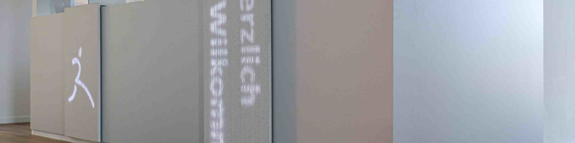 Der Empfangsbereich in einem Unternehmen wird von Geschäftspartnern und Kunden zuerst wahrgenommen und bleibt dauerhaft im Gedächtnis. Ein Empfangstresen aus digitalem Lichtbeton hinterlässt daher einen nachhaltigen Eindruck. Die leuchtende Oberfläche zeigt bewegte Texte und Grafiken und bietet Platz für Informationen und Werbung.