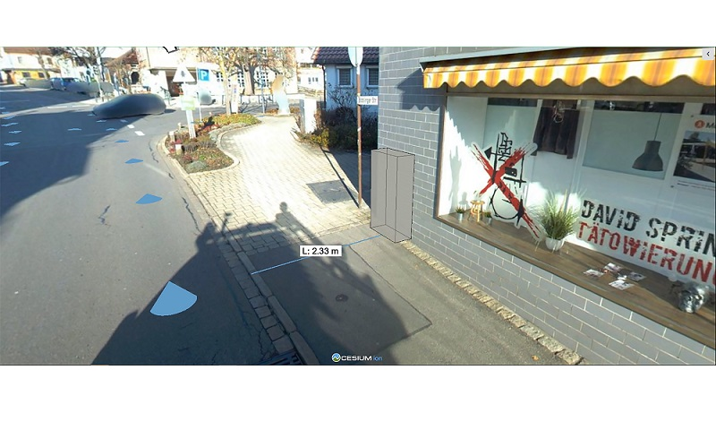 Ein kleines, aber entscheidendes Detail ließ sich bisher aber nicht vom Schreibtisch aus planen, sondern erforderte stets Vor-Ort-Begehungen und Ausmessungen: die Position der Netzverteilerkästen, die die einzelnen Glasfaserleitungen von der Haupttrasse an die Haushalte verteilen. Im bisherigen 2D-Kartenmaterial war es nicht möglich, die optimale Position zu bestimmen und alle Faktoren zu berücksichtigen, beispielweise die vorgeschriebene Restgehwegbreite. Zeitaufwändige Vor-Ort-Termine der Planer waren die einzige Lösung, um einen geeigneten Standort zu finden. Die Software Fibre3D des Fraunhofer-Instituts für Graphische Datenverarbeitung IGD ermöglicht den Planern zukünftig, in eine 3D-Welt einzutauchen, die Kästen virtuell zu positionieren und so vom Schreibtisch aus den geeignetsten Standort zu finden. Messfunktionen und maßstabsgetreue Projektionen ermöglichen auch bei technisch anspruchsvollen Lokationen eine zügige Prüfung. Ist die digitale Planung abgeschlossen, können direkt aus dem Tool heraus anschauliche Fotomontagen für die Antragsunterlagen zur Standortsicherung generiert werden. Dieser realistische Eindruck erleichtert auch dem Wegeunterhaltspflichtigen den Genehmigungsprozess.
