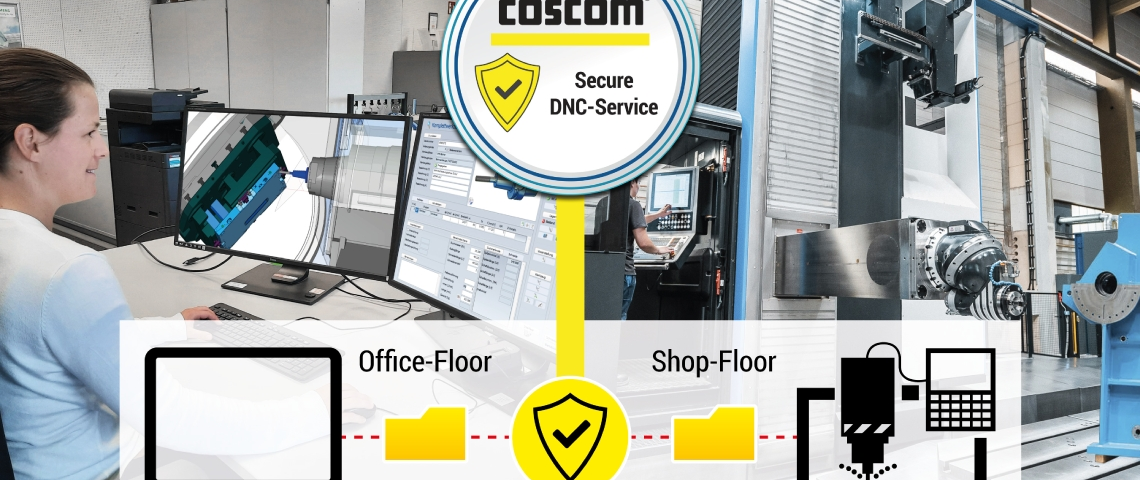 COSCOM hat hierzu das Softwareprodukt „IT Security Service“ entwickelt. Es ist ein moderner Webservice, der das Maschinennetzwerk vollständig und verlässlich vom Office-Netzwerk trennt. Dazwischen wird eine Firewall geschaltet, über die beide IT-Infrastrukturen miteinander Daten sicher austauschen. Zum Beispiel lassen sich CNC-Programme an die Bearbeitungszentren über freigeschaltete Ports übertragen.