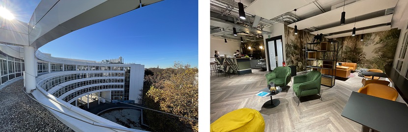 Damit werden ideale Voraussetzungen für zeitgemäße Bürokonzepte geschaffen, um die Arbeit wechselnder Projektteams mit Kunden verschiedenster Branchen ermöglichen. Highlights sind die professionell eingerichtete Teamküche, eine Dachterrasse mit Alpenpanorama sowie die Kreativ-Area, ein Eltern-Kind-Zimmer und ein Massage-Raum für Wohlfühl-Atmosphäre.