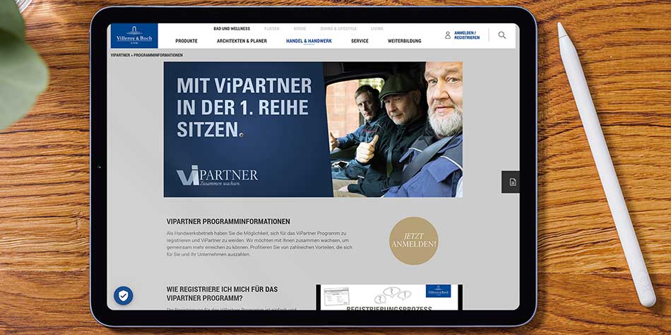 Fachkräfte im Handwerk bilden eines der Bindeglied er zwischen Hersteller und Endkundschaft – das macht sie zu wichtigen Multiplikatoren für Villeroy & Boch. Zudem haben sie auf Grund ihrer Kundennähe oft einen signifikanten Einfluss bei der Wahl der Herstellermarke. Partnerbindung ist in diesem Produktsegment somit immer auch Kundenbindung.