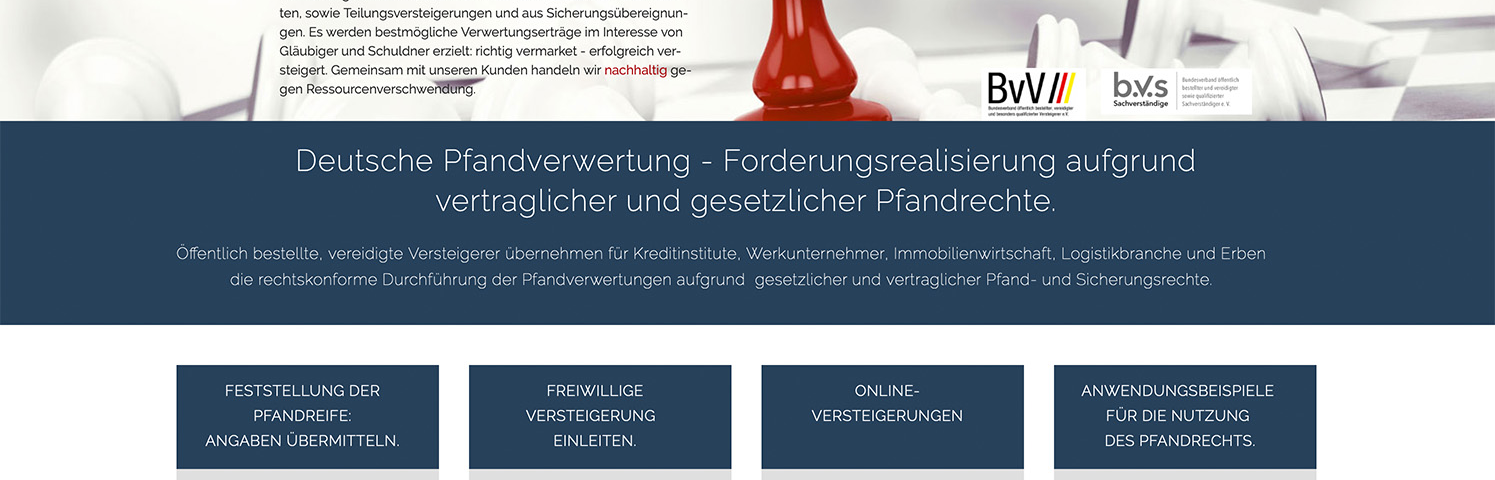 Pfandrechtsverwertungen sind das Spezialgebiet der allgemein öffentlich bestellten, vereidigten Versteigerer. Als praxiserfahrene, gut vernetzte Experten arbeiten sie schnell und effizient. Die Bestimmungen der Zivilprozessordnung und die GVGA für Gerichtsvollzieher sind für öffentlich bestellte Versteigerer, die nach BGB und HGB arbeiten, nicht einschlägig, denn der Gesetzgeber beabsichtigt eine kaufmännisch flexiblere und effizientere Gestaltung des Verwertungsverfahrens.