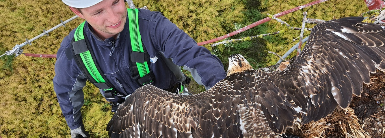 Innerhalb von einem Jahr hat die Belegschaft von E.DIS mehr als 300 Jungvögeln einen Ring angelegt, davon allein 135 Fischadlern auf Strommasten in Brandenburg, 91 Fischadlern auf 110kV-Masten und 96 Jungadlern auf 20kV-Masten in der Mecklenburger Seenplatte. Da Fischadler eine bedrohte Tierart sind, engagiert sich der Netzbetreiber für die Artenvielfalt und den Naturschutz in der Region. Wegen der luftigen Höhe auf den Strommasten von E.DIS ist es für Vogelschützer sonst schwierig, den Nachwuchs der Fischadler zu erreichen. Mit der Beringung unterstützt E.DIS die Naturschutzverbände dabei, die Vögel gezielt zu beobachten und Daten zum Zustand der Population zu erhalten. Das Gewicht eines Rings, den der Netzbetreiber anlegt, ist für die Vögel in etwa so schwer wie die Armbanduhr bei einem Menschen. Wer sich für das Engagement von E.DIS für den Naturschutz und Artenschutz interessiert, klickt auf https://www.maz-online.de/Lokales/Havelland/2000.-Fischadler-beringt