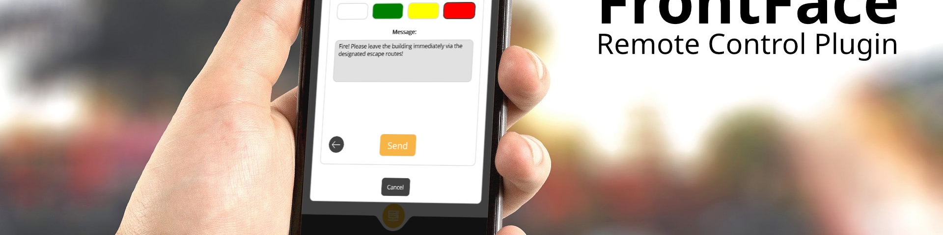 Mit sogenannten Plugins kann die FrontFace-Software um zusätzliche Funktionalität erweitert werden. Das “ Remote Control Plugin“ ermöglicht die „Fernsteuerung“ von Bildschirmen mittels Smartphone App (Android oder iOS) oder alternativ auch über eine Windows App. In der neusten Version des Plugins wurde mit der Broadcast-Funktion jetzt auch die Unterstützung von Alarmierungs-Szenarien ergänzt. So können mit nur einem Klick in der Remote Control App alle Bildschirme in einem Netzwerk spontan eine Text-Nachricht anzeigen. Neben einer simplen Nur-Text-Darstellung mit unterschiedlichen Farb-Varianten können auf diesem Wege auch komplett individuell gestaltete Hinweis-Tafeln angezeigt werden, z.B. mit auffälligen Elementen wie einem animierten Lauftext über den regulären Bildschirm-Inhalten. Auch akustische Signalisierungen in diesem Zusammenhang sind möglich.