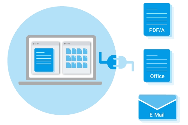 Die Verbindung beider Software-Lösungen erfolgt über ein Plugin, das die ecoMAILZ-Software für die automatische E-Mailarchivierung in die Oberfläche des Dokumenten-Management-Systems ecoDMS integriert. Dieses Plugin ermöglicht es den Nutzern, alle wichtigen Dokumente, einschließlich E-Mails, über eine einzige Oberfläche zu verwalten. Die integrierte Volltextsuche sorgt dafür, dass benötigte Dokumente und E-Mails schnell gefunden werden können.