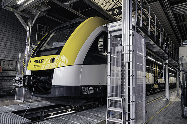 Für den Verkehrsbetrieb Hohenzollerische Landesbahn der SWEG in Gammertingen hat KRAUSE einen Dacharbeitsstand mit Spaltmaß Null entwickelt. Er wurde exklusiv für „Lint 54“ Züge der Baureihe 622 angepasst. Dieser bietet den Mitarbeiter*innen der SWEG sicheren Zugang zu den Dachflächen der Züge, insbesondere zur Wartung der Klimaanlagen. Durch die Lösung der Steigtechnik-Spezialisten verringern sich die Standzeiten enorm während sich Ergonomie und Sicherheit am Arbeitsplatz deutlich steigern. Eine Investition, die sich schnell amortisiert und die Effizienz nachhaltig erhöht.