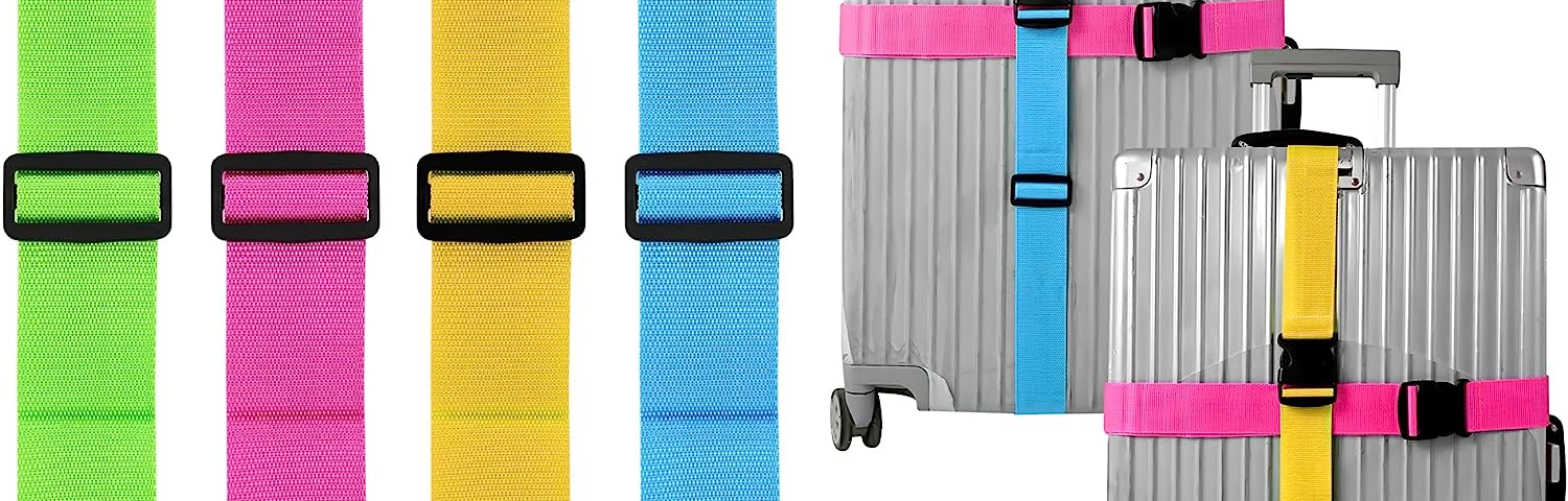 Wenn Sie sich auf eine Reise vorbereiten, ist es wichtig, dass Ihr Gepäck sicher und leicht identifizierbar ist. Eine einfache Möglichkeit, dies zu tun, ist ein Satz bunter Koffergurte. Schauen wir uns dieses Set aus vier Koffergurten in den Farben Grün, Rosa, Gelb und Blau einmal genauer an.