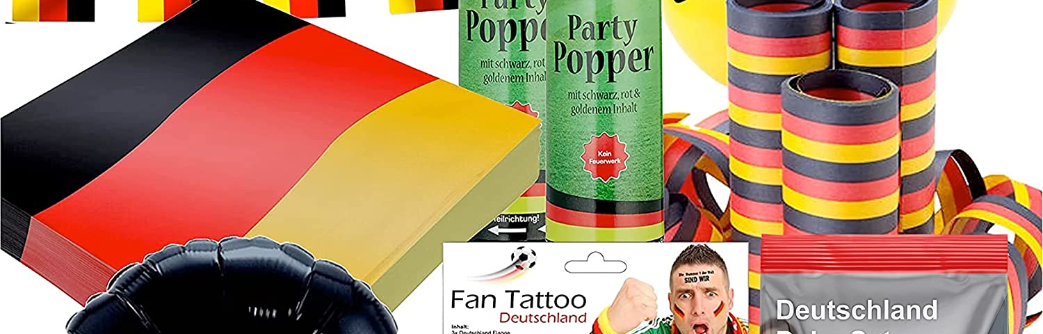 Sind Sie ein Fußballfan und wollen Ihr Zuhause während der Welt- oder Europameisterschaft festlich schmücken? Dann ist das XXL-Deutschland-Deko-Set genau das Richtige für Sie. Es enthält über 50 Teile, die Sie in Stimmung bringen.
