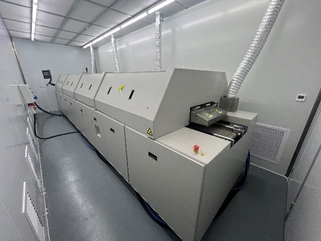 Somit eignet sich der Reinraum ideal für z. B. die Produktion der VisionX Semico, einer Reflow-Lötanlage für die Halbleiterfertigung, um die hochkomplexen Schaltungen der Halbleiterbauteile vor Verunreinigungen zu schützen, die die Funktionsfähigkeit der Bauteile beeinflussen können.
