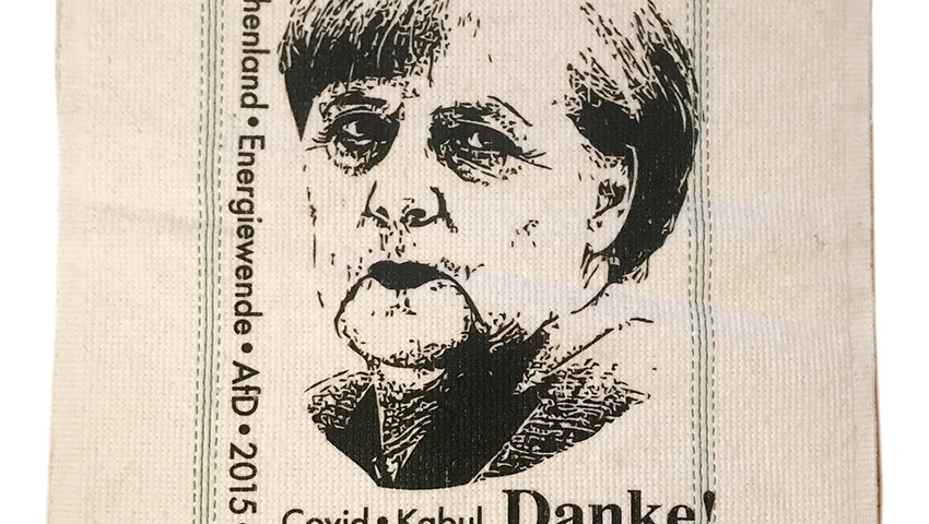 Der auf 240 Stück limitierte Siebdruck auf Putzlappen ist ein satirischer Seitenhieb auf die ausgeschiedene Kanzlerin Angela Merkel. Diese Serigrafie ist Kunst zum Anfassen. Eine frische Geschenkidee für Weihnachten, für Freunde und Bekannte, die man mit einer verrückten Idee überraschen möchte. Der Preis ist 15 €.inkl. Versand innerhalb Deutschland.