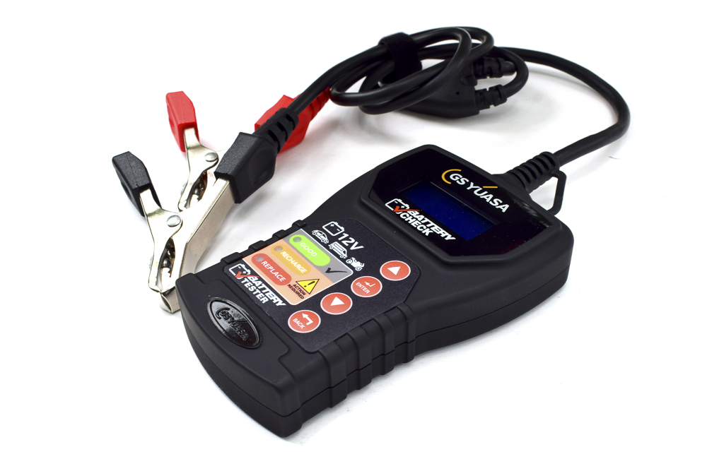 … bietet GS YUASA die Möglichkeit, 12-V-Batterien von PKWs, leichten Nutzfahrzeugen und Motorrädern, die für den regelmäßigen Gebrauch in einem Fahrzeug eingebaut sind, bis zu 900CCA zu testen. Es zeigt den allgemeinen Batteriezustand an und funktioniert ganz einfach: Klemmen an die Batterie anschließen, über die Up-/Down-Buttons den Kaltstartstrom (CCA) des Batterielabels eingeben, und schon checkt das Gerät die Batterie. Nach der Prüfung leuchtet eine der LED-Anzeigen auf dem Gerät auf und zeigt das Ergebnis an: Grün für einen guten Batteriezustand, Orange fordert dazu auf, die Batterie vollständig aufzuladen und erneut zu testen, und Rot bedeutet, die Batterie auszutauschen. Zudem zeigt die LED-Anzeige auch die Spannung der Batterie und den tatsächlichen Kaltstartstrom an.