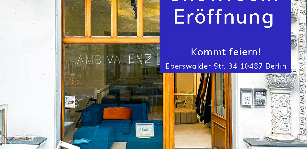 Wir freuen uns darauf, Sie in unserem neuen Showroom zu begrüßen und mit Ihnen auf ein neues Kapitel AMBIVALENZ anzustoßen.