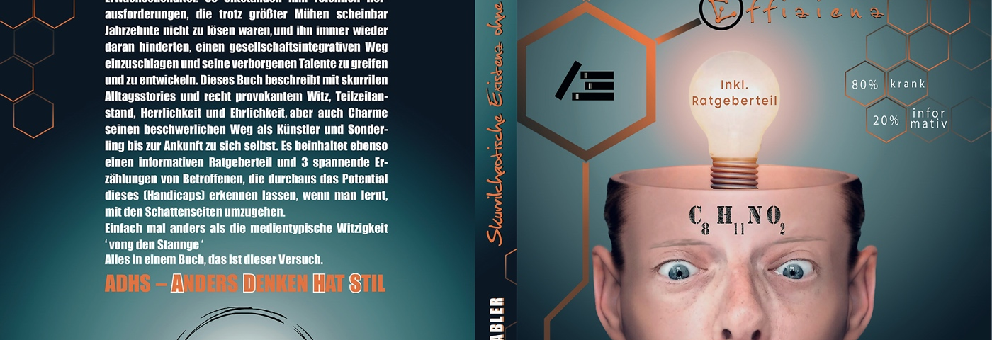 Unter der kreativen Obhut des spätdiagnostizierten Künstlers Aimo Nyland (alias Vierbuchstabler) entstanden, führt „SKURILLCHAOTISCHE EXISTENZ OHNE EFFIZIENZ“ den Leser in den ersten beiden Kapiteln mit einer Kurzbiografe und witzigen Alltagskurzgeschichten in das Thema ein.