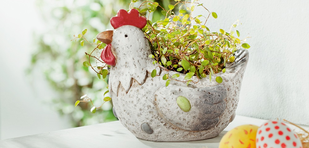 Wenn die ersten Schneeglöckchen zwischen den letzten Schneeresten hervorlugen, ist der Frühling nicht mehr weit. Die Sander Tisch- und Dekoserie „Snowdrops“ mit den zauberhaften Schneeglöckchen weckt auch im Esszimmer die Vorfreude auf den Frühling. Der robuste Gobelin setzt Akzente, ist strapazierfähig und dauerhaft schön. Frisch und fröhlich wirkt auch das formschöne Terracotta-Pflanzgefäß in Huhnform. Es kann mit Blumen oder auch Kräutern bepflanzt werden.