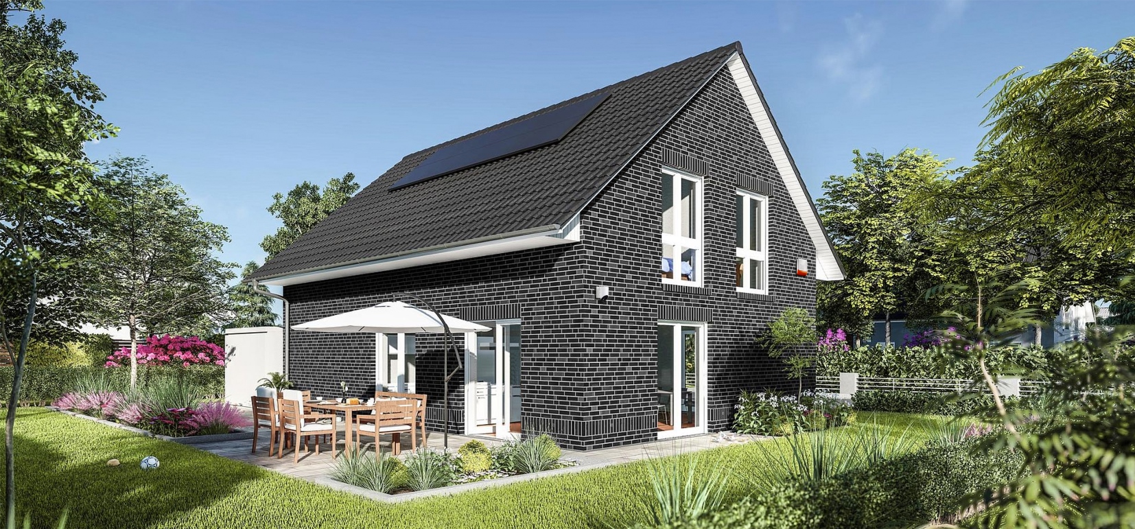 Dieses Viebrockhaus-Gesamtkonzept macht nicht nur „Energiekostenlos glücklich“, sondern verschafft auch ein höheres Finanzierungsvolumen. Denn die Viebrockhaus-Finanzierungspartner legen hier als sogenannte „Bewirtschaftungspauschale“ nur 1,41 Euro statt 2,50 Euro pro Quadratmeter Wohnfläche zugrunde. Bei angenommener Annuität von 4 Prozent (Zins und Tilgung) ergibt sich daraus für ein Viebrockhaus Maxime 300 mit 145 Quadratmeter Wohnfläche ein zusätzliches Finanzierungsvolumen von über 47.000 Euro gegenüber einem Haus mit marktüblichem Standardstromtarif.