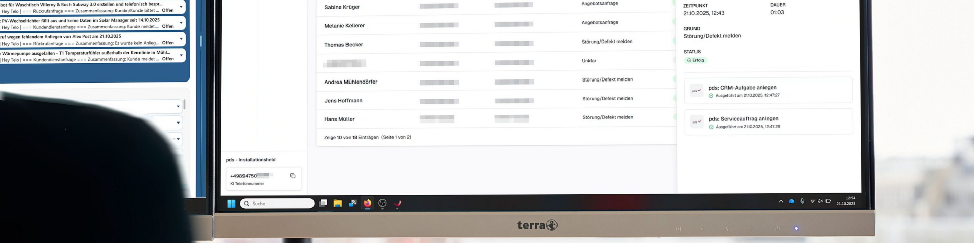 Dank Zugriff auf Kontaktdaten aus der pds Software kann „Hey Telo“ auch Anrufer persönlich begrüßen und zugewiesene Aufgaben automatisch anlegen. So sehen Betriebe bereits am Morgen alle Anfragen, die nach Feierabend oder am Wochenende eingegangen sind – perfekt vorbereitet zur Bearbeitung. Gleichzeitig steigert die Lösung die Erreichbarkeit: keine Warteschleife, Rückrufoptionen und schnelle Notfallweiterleitung inklusive.