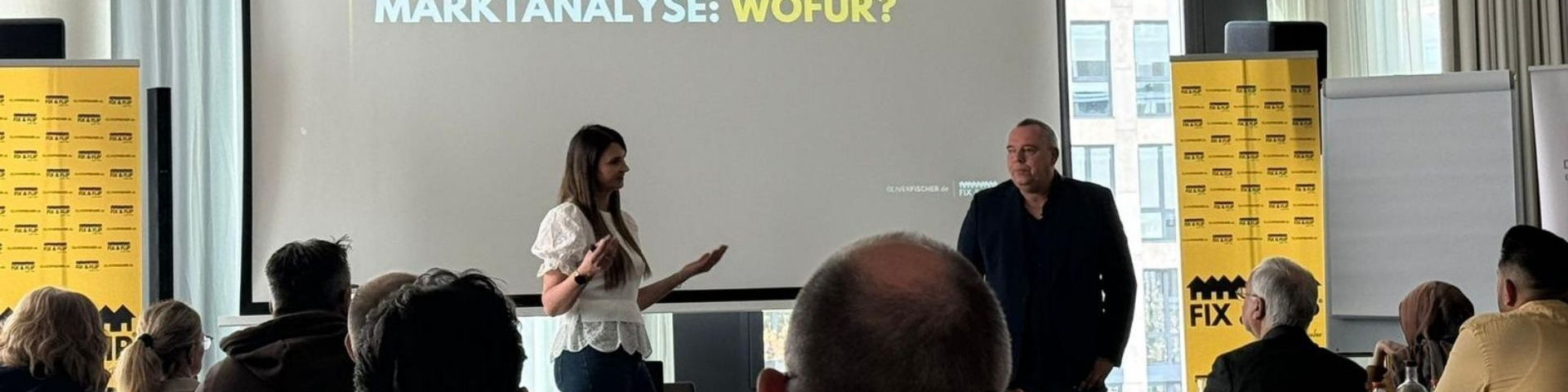 Den Themenblock Marktanalyse präsentierte Oliver Fischer gemeinsam mit Yasmin Müller Markwart von den Staging-Profis. Die Unternehmerin im Bereich Homestaging zeigte, wie eine professionelle Marktanalyse und gezielte Objektpräsentation den Verkaufserfolg maßgeblich steigern können. Ihr Praxiswissen ergänzte das FIX&FLIP System um eine wertvolle Perspektive, insbesondere für Teilnehmer, die ihre Immobilien schnell und gewinnbringend am Markt platzieren wollen.