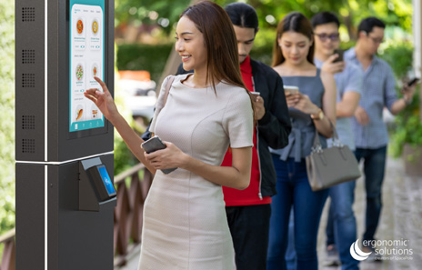 Der Outdoor-Kiosk für den Elo-Touchscreen 2799L von Ergonomic Solutions ist auf Modularität und Konfigurierbarkeit ausgelegt. Zahlungen sind über ein Zahlungsterminal Verifone UX700 oder PAX IM30 möglich, das in den Boden- oder in den Wandkiosk integriert oder als Option hinzugefügt wird. Die Self-Service-Anwendung selbst lässt sich bei dem modernen Kiosk unter Verwendung der Standardplattform einfach ändern, was zur Zukunftssicherheit der Investition beiträgt.