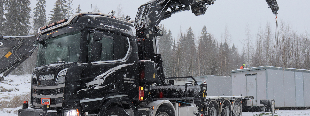 Bereits am Tag nach der Auslieferung wurde der Fassi F1450R-HXP Techno auf einer Baustelle in Kuopio eingesetzt, einer Stadt in der Nähe des Geschäftssitzes von Kuljetusliike Knuutinen Oy in Siilinjärvi. Montiert auf einem Lkw vom Typ Scania stellte der neue Kran sofort seine Vorzüge unter Beweis, wie Jarkko erneut betonte: „Praktisch und einfach in der Handhabung, aber auch bei der Inbetriebnahme. Das System ACF (Automatic Crane Folding) zum automatischen Schließen und Öffnen des Krans ist ideal, um diese Arbeitsgänge zu automatisieren, die normalerweise wertvolle Minuten in Anspruch nehmen. Und auch bei der Positionierung ist meines Erachtens nach das System FSC Techno konkurrenzlos: Selbst bei engsten Platzverhältnissen, wenn bei der Positionierung die Stützfüße nicht maximal ausgefahren sind, ist der Kran in Lage sicher zu arbeiten und zeigt mir auf dem Display deutlich seine Hebekapazität und Ausladung entsprechend der gerade durchgeführten Stabilisierung an. Diese Funktion sorgt dafür, dass ich beruhigt arbeiten und mich auf die Last konzentrieren kann, denn ich weiß, dass die neue Techno-Elektronik den Rest erledigt. Dank des XP-Systems habe ich eine Leistungsreserve, die es mir ermöglicht, auch anspruchsvollere Lasten zu handhaben. Zusammen ermöglichen mir die beiden Systeme FSC Techno und XP, anspruchsvolle Hebevorgänge in sehr komplexen Situationen durchzuführen“, erklärt Jarkko abschließend.