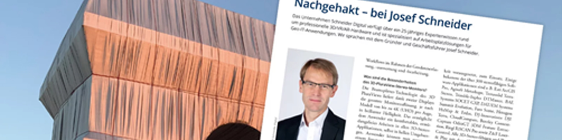 Das Unternehmen Schneider Digital verfügt über ein 25-jähriges Expertenwissen rund um professionelle 3D/VR/AR-Hardware und ist spezialisiert auf Arbeitsplatzlösungen für Geo-IT-Anwendungen. Das Fachmagazin gis.Business sprach mit dem Gründer und Geschäftsführer Josef Schneider.