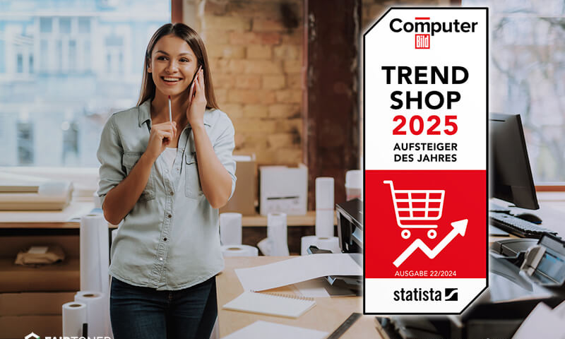 FairToner hat in der Kategorie „Bürobedarf“ als Anbieter von Druckerzubehör eine technisch sehr hohe Qualität sowie ein herausragendes Wachstum erzielt. Wir sind besonders stolz darauf, das Trend Shop Qualitätssiegel auch im Jahr 2025 tragen zu dürfen. Bereits in den Jahren 2022, 2023 und 2024 konnten wir uns die Auszeichnung sichern. Die Veröffentlichung der aktuellen Studie erfolgte online am 08. Oktober 2024 auf der Webseite von COMPUTER BILD. Am 18. Oktober 2024 wurde die Auszeichnung ebenfalls in der Printausgabe der COMPUTER BILD veröffentlicht.