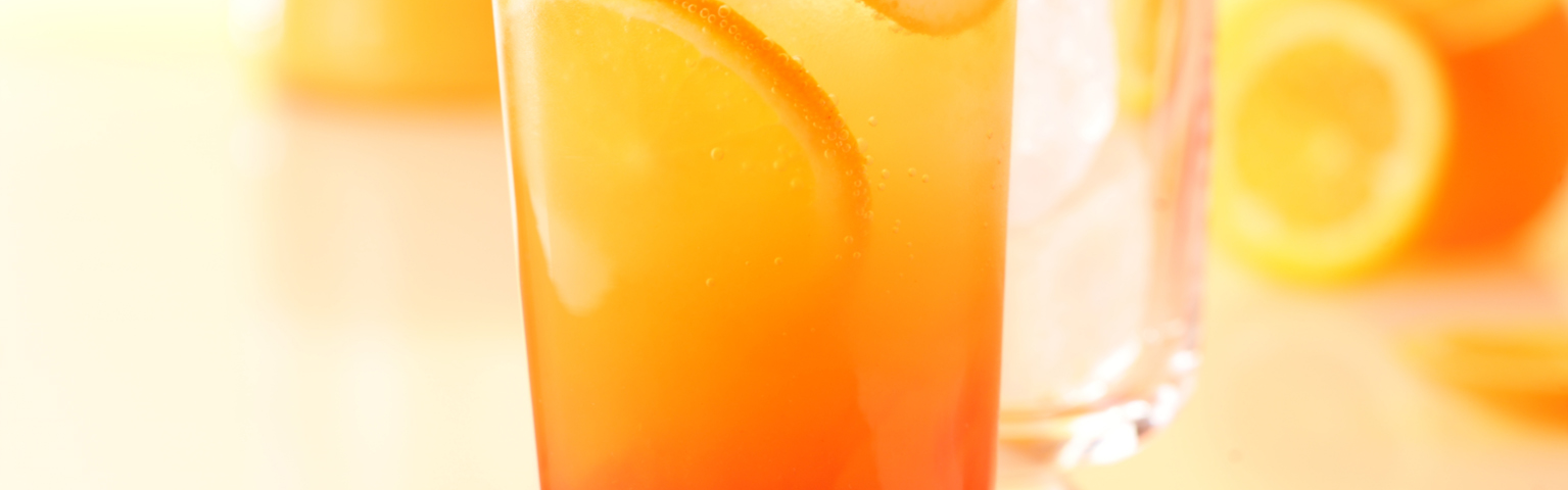 400 ml Orangensaft, 50 ml Sanddornnektar, 50 ml Aprikosennektar, 50 ml Limettensaft, 4 kleine Orangenscheiben (unbehandelt), 40 ml Grenadine, 100 ml Tonic Water