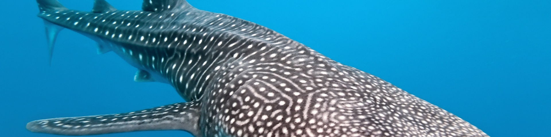 Der Walhai ist eher ein Hai als ein Wal, hat aber die Größe eines Wals. Man schätzt, dass diese Tiere bis zu 20 Meter lang, über 34 Tonnen schwer und 70 bis 100 Jahre alt werden können. Die Haie zeichnen sich durch ihre auffällige blaugraue Rückenfärbung mit zahlreichen weißen Punkten und Streifen, einen hellen Bauch und ein 1,5 Meter breites, stumpfes Maul aus. Durch dieses riesige Maul, in dem sich mehr als 3.000 sehr kleine Zähne befinden, lassen die Tiere 6.000 Liter Wasser pro Stunde strömen. Damit filtern die Meeresriesen Plankton und Kleinstlebewesen aus dem Wasser, von denen sie sich ernähren.
