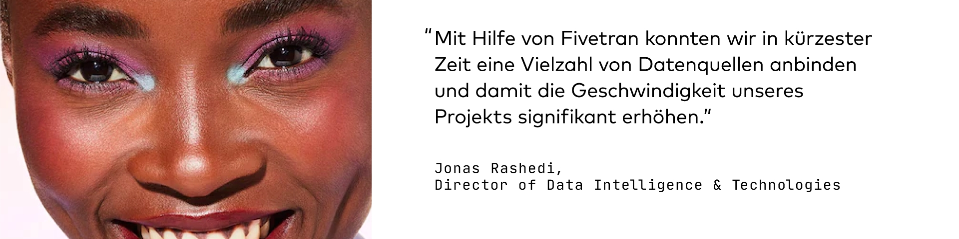 „Fivetran hat wesentlich dazu beigetragen, unsere E-Commerce Abteilung auf ein neues Level von Data Analytics zu bringen“, so Jonas Rashedi, Director of Data Intelligence & Technologies bei DOUGLAS. „Mit Hilfe von Fivetran konnten wir in kürzester Zeit eine Vielzahl von Datenquellen anbinden und damit die Geschwindigkeit unseres Projekts signifikant erhöhen.“