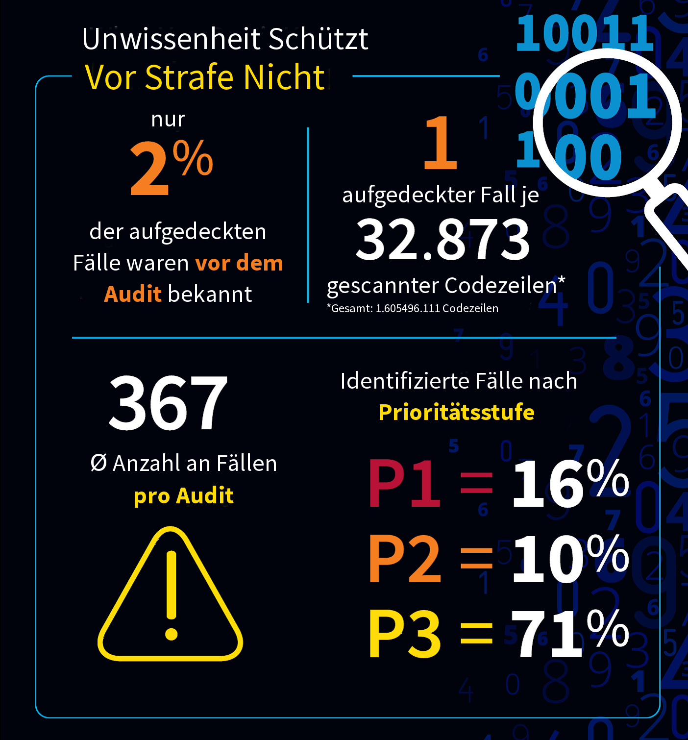 Durchschnittlich kommt es alle 32.873 Codezeilen zu einem Compliance-Risiko