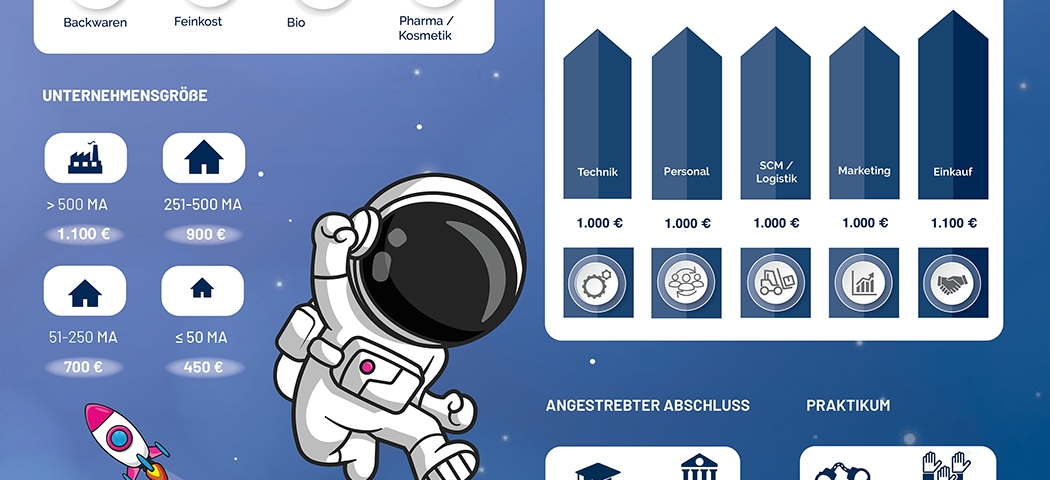 Auch unternehmensspezifische Faktoren spielen beim Thema Gehalt eine entscheidende Rolle: Unter den Branchen belegt die Getränkeindustrie erneut den Spitzenplatz mit monatlich 1.300 EUR brutto, gefolgt von der Obst- und Gemüsebranche mit starken 1.170 EUR und der Milchindustrie mit 1.100 EUR. Das Schlusslicht bilden in diesem Jahr wieder die Bereiche Backwaren und Feinkost mit je 800 EUR brutto pro Monat.