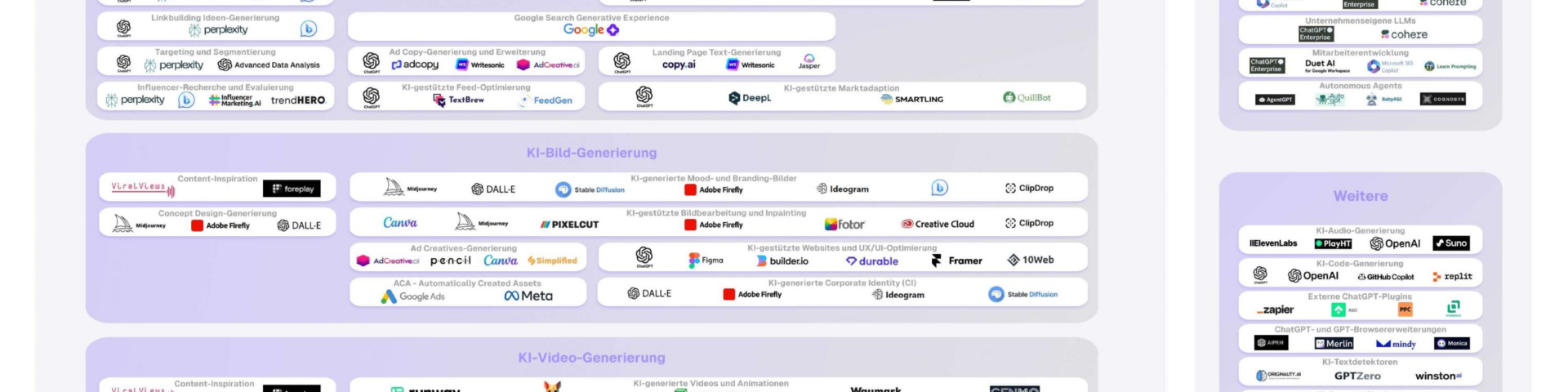FraMar dient als umfassender Leitfaden für die Auswahl geeigneter Marketingbereiche und KI-Tools. Es zielt darauf ab, langfristige KI-Prozesse in Unternehmen zu entwickeln und bietet einen klaren Überblick über relevante Marketingbereiche für den Einsatz von KI.