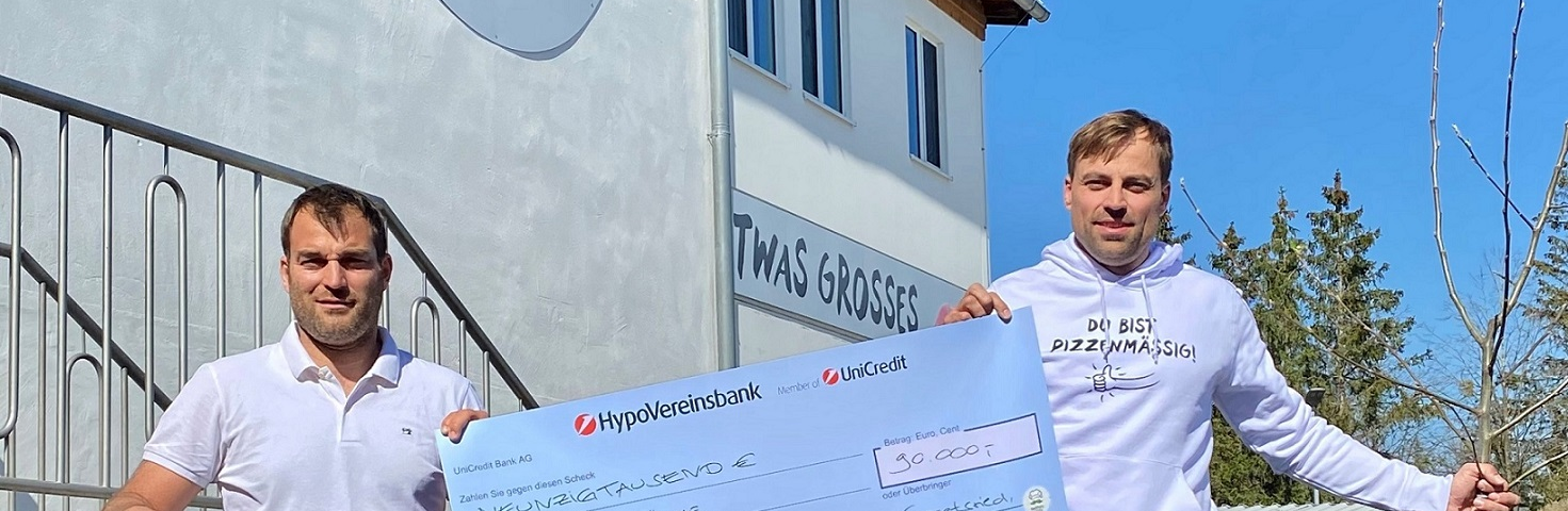 Geretsried/Deggendorf, 26. April 2021. Franco Fresco, das Unternehmen, dass unter der Marke Gustavo Gusto Premium-Tiefkühlpizzen herstellt, unterstützt die Hilfsorganisation „Projekte für arme Menschen e.V.“ aus Deggendorf und lässt Bäume in Brasilien pflanzen. Einen symbolischen Scheck in Höhe von 90.000 Euro überreichte am Freitag, 23. April 2021 anlässlich zum Tag des Baumes (Sonntag, 25. April 2021) Christoph Schramm, Gründer und Geschäftsführer von Franco Fresco, an Dr. Alexander Fink vom Verein „Projekte für arme Menschen“. Mit diesem Geld werden 270.000 Bäume in Araruna/Paraíba im brasilianischen Nordosten, einer der ärmsten Gegenden Brasiliens, gepflanzt. Und jede sechs Minuten kommt ein neuer Baum hinzu. Vor der Scheckübergabe haben Christoph Schramm und Alexander Fink einen Baum (Apfelbaum) auf dem Gelände des Unternehmens in Geretsried gepflanzt.